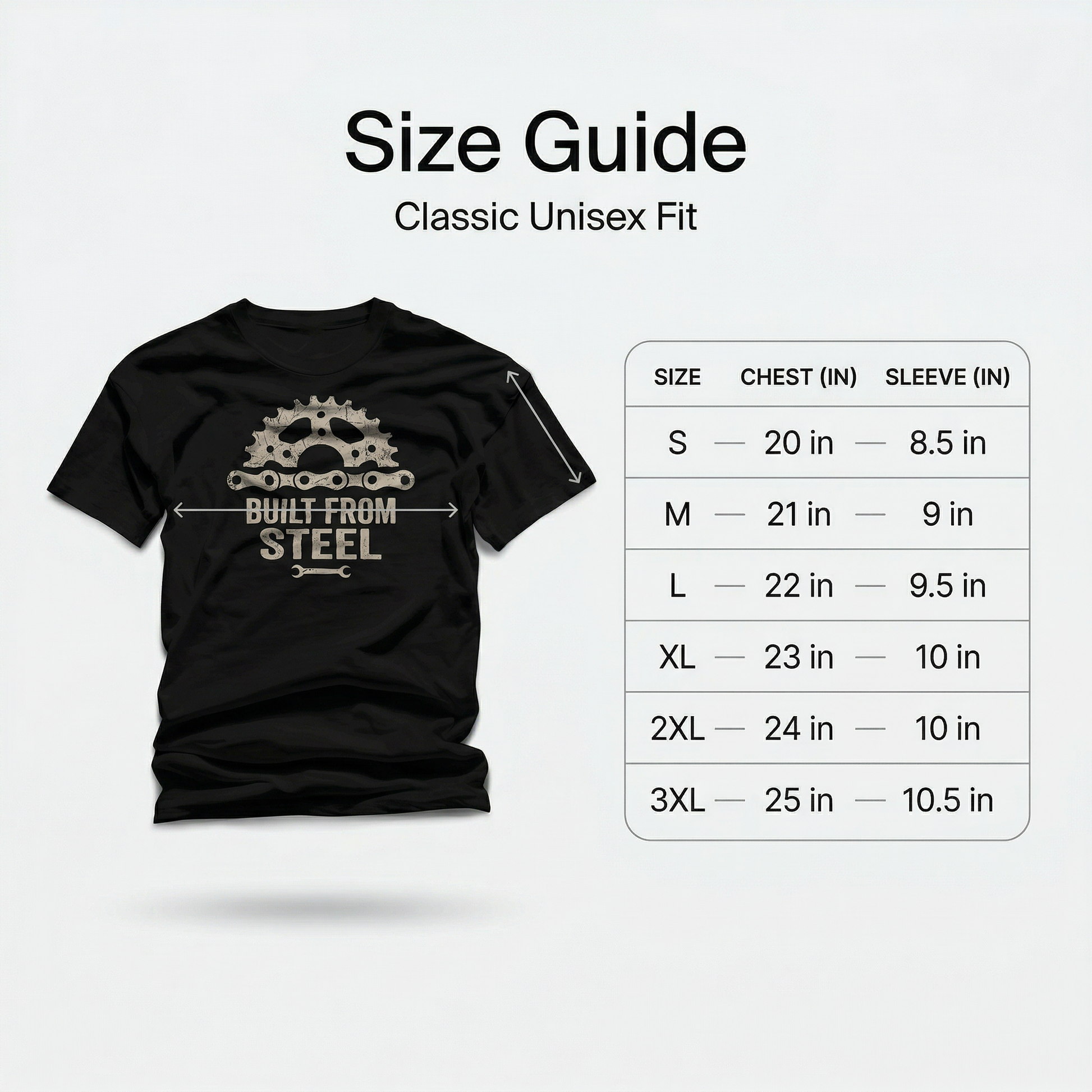 - Bold "Built From Steel" slogan – statement print for tough spirits
